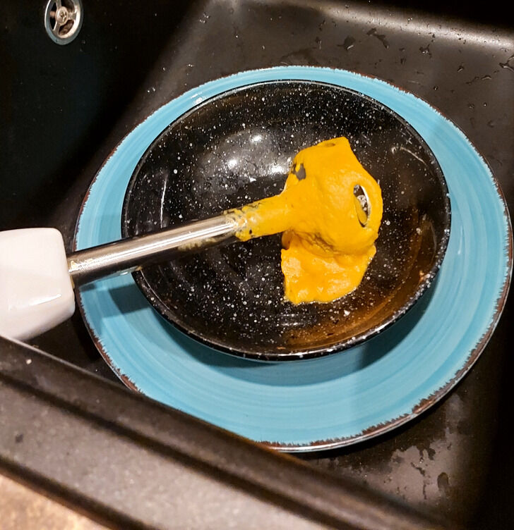 Если делать это не часто — большой беды не будет, но если регулярно отправлять насадку-ножку в посудомойку, то лезвия затупятся быстрее, и срок службы полезного прибора сократится. А ведь отмыть присохшую еду с погружного блендера очень просто — достаточно набрать в высокий стакан теплой мыльной воды, опустить в него блендер и запустить на 10-20 секунд. Затем снять насадку, сполоснуть, протереть и убрать до следующего раза.