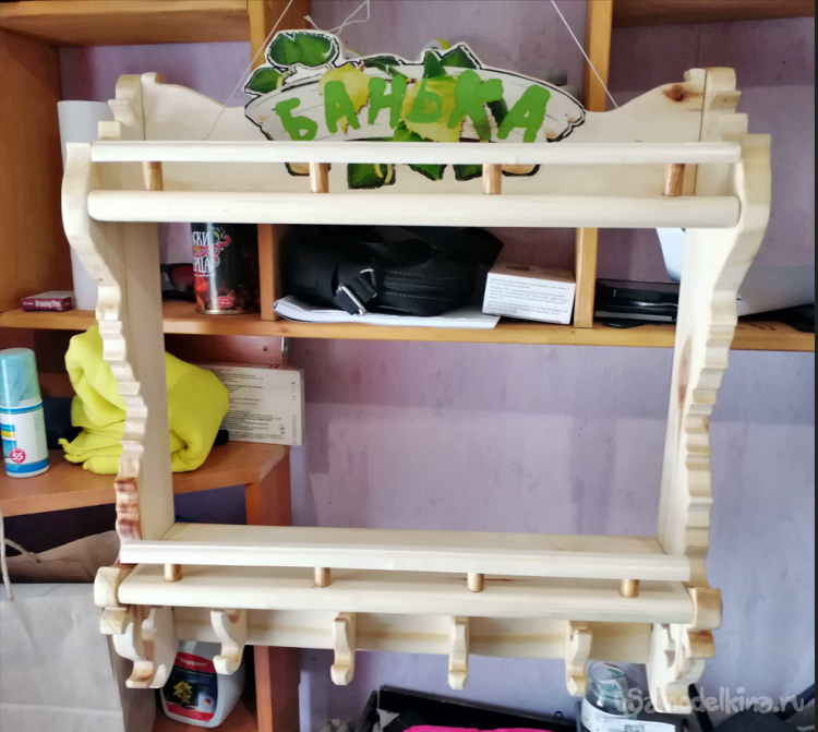 Баня — это не просто место для гигиенических процедур, это целый ритуал, где каждая деталь должна способствовать полному расслаблению и погружению в атмосферу уюта. Именно поэтому банные аксессуары ценятся не только за свою функциональность, но и за способность гармонично вписываться в интерьер, отражая дух традиционной русской парной. Создавая эту настенную полку для банных принадлежностей, я стремился объединить практичность, прочность и эстетику, чтобы она стала не просто предметом мебели, а настоящим украшением. Концепция и дизайн: от идеи до воплощения. Моей целью было создать компактный, но при этом вместительный органайзер, способный упорядочить всё необходимое в бане. Полка задумывалась в традиционном стиле, с элементами народного декора, чтобы стать не просто функциональным предметом, а полноценным тематическим акцентом интерьера. Конструкция полки. Основная конструкция полки проста и надёжна: Две горизонтальные полки (верхняя и нижняя) — обеспечивают достаточно места для хранения. Пространство между полками — идеально подходит для размещения банных шампуней, гелей, скрабов или аккуратно свёрнутых полотенец. Пять деревянных крючков (расположены под нижней полкой) — прекрасно подходят для подвешивания веников, мочалок, банных шапок или полотенец. Боковые стойки с резьбой — не просто опоры, а ключевой декоративный элемент, который придаёт конструкции устойчивость и неповторимый облик. Габариты полки. Размеры были тщательно продуманы для оптимального использования пространства: ширина — около 60 см; глубина — 25 см; высота между полками — 25 см; общая высота — примерно 70 см. Инструменты, которые стали продолжением рук. Создание такой полки — это диалог с материалом, где инструменты выступают проводниками идеи. Я сознательно использовал достаточно простой и доступный арсенал, доказав, что для настоящего творчества не всегда нужны профессиональные станки. Главное — острота, точность и внимательность. Лобзиковый станок (или ручной электролобзик с направляющей) — главный «скульптор». Именно он кропотливо, миллиметр за миллиметром, вырезал ажурные узоры на боковых стойках и плавные изгибы фигурной задней стенки. Для чистого реза без сколов я использовал специальные пилки с мелким зубом. Ручной фрезер с набором фрез — незаменим для финишной обработки кромок. Прямоугольные края полок и декоративных элементов после фрезеровки радиусной фрезой сталискруглёнными, гладкими и абсолютно безопасными для рук. Это придало изделию завершённый, аккуратный вид. Шлифовальная машинка (орбитальная или вибрационная) и набор наждачной бумаги разной зернистости — основа основ для идеальной поверхности. Сначала грубое зерно (80–100) для снятия основных неровностей, затем постепенный переход к шелковистой гладкости (до 220–240 зерна). Шлифовка — самый медитативный этап, когда под пальцами рождается та самая приятная тактильность дерева. Торцовочная пила (или точная ножовка с угловым коробом) — для обеспечения идеально точных, перпендикулярных торцов всех деталей. От этого напрямую зависит аккуратность сборки и отсутствие перекосов. Дрель‑шуруповёрт — для сверления направляющих отверстий под крепёж и финальной сборки. Предварительное сверление тонким сверлом обязательно, чтобы избежать раскалывания осины при вкручив