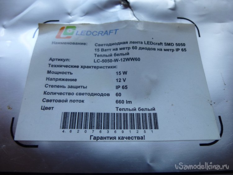 Опыт работы со светодиодными лентами у меня уже был: в гараже я использовал их для освещения по периметру гаража. Пошло где-то 6 м ленты на светодиодах SMD 5050 и 3 профиля — два угловых и один прямой. Правда и блок питания был посолиднее.