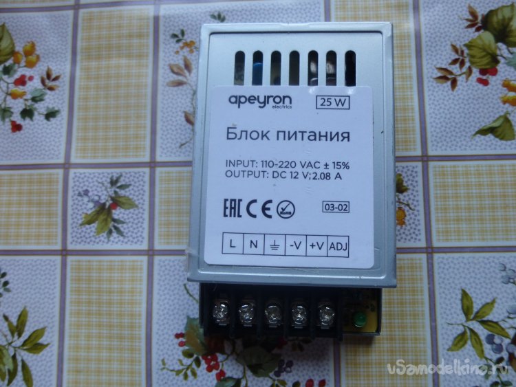 Блок питания у меня был на 25 Вт — должно хватить с запасом.