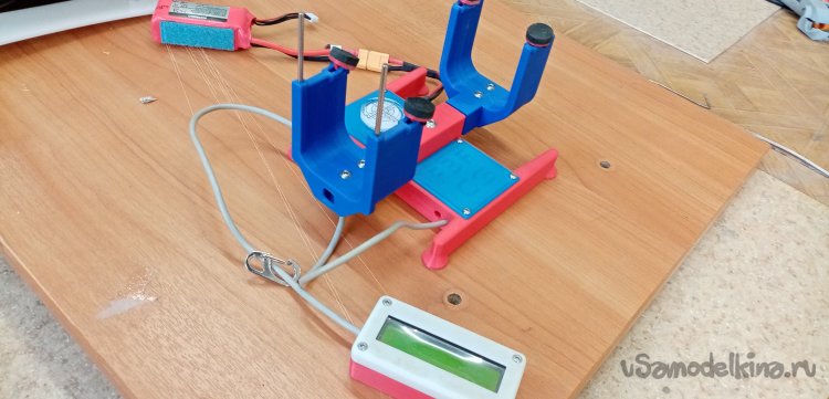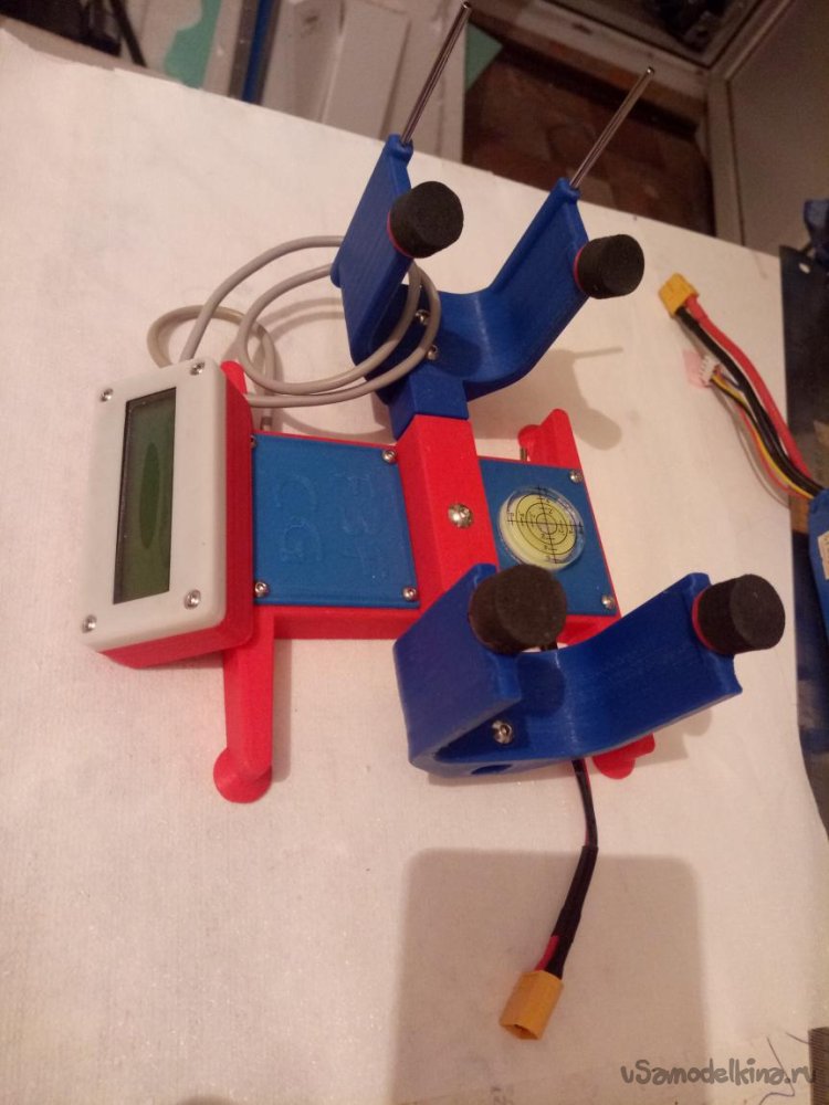 Мой товарищ по борьбе изготовил специальный стенд измеритель. Для определения веса и корректировки центра тяжести планера. Все элементы напечатаны на принтере.