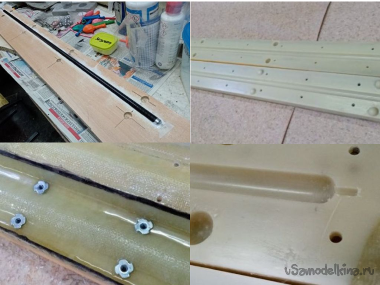 Для крепления руля высоты нужно изготовить качалку-площадку. По устоявшейся традиции были изготовлены формы, с помощью которых и было изготовлено некоторое количество этого устройства. В работу взяли самый легкий вариант. Его закрепили в нужном месте хвостовой балки.