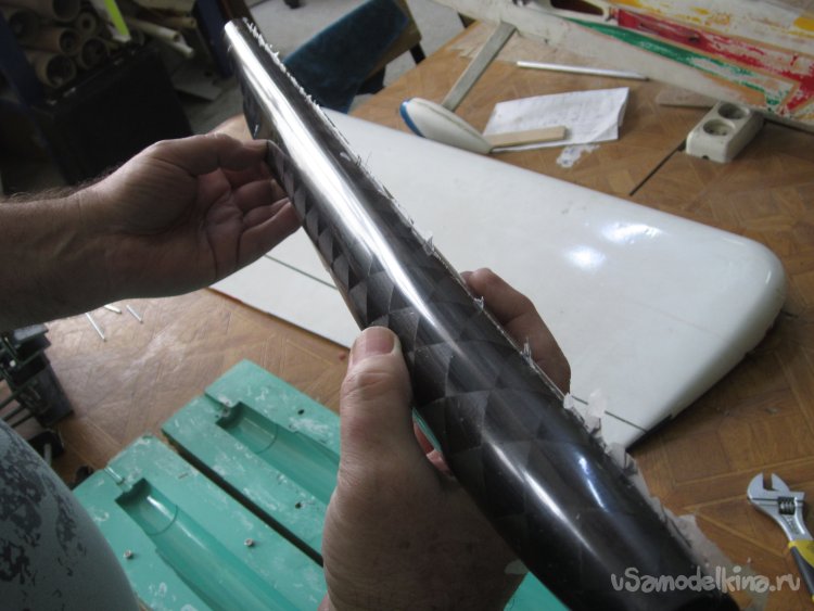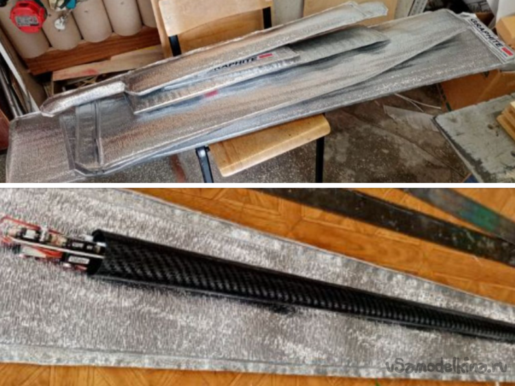 Из остатков карбона и смолы изготовили еще 2 фюзеляжа и хвостовые балки. Хотя дорогущего карбона взяли в притир. Но экономили на каждом кусочке материала.