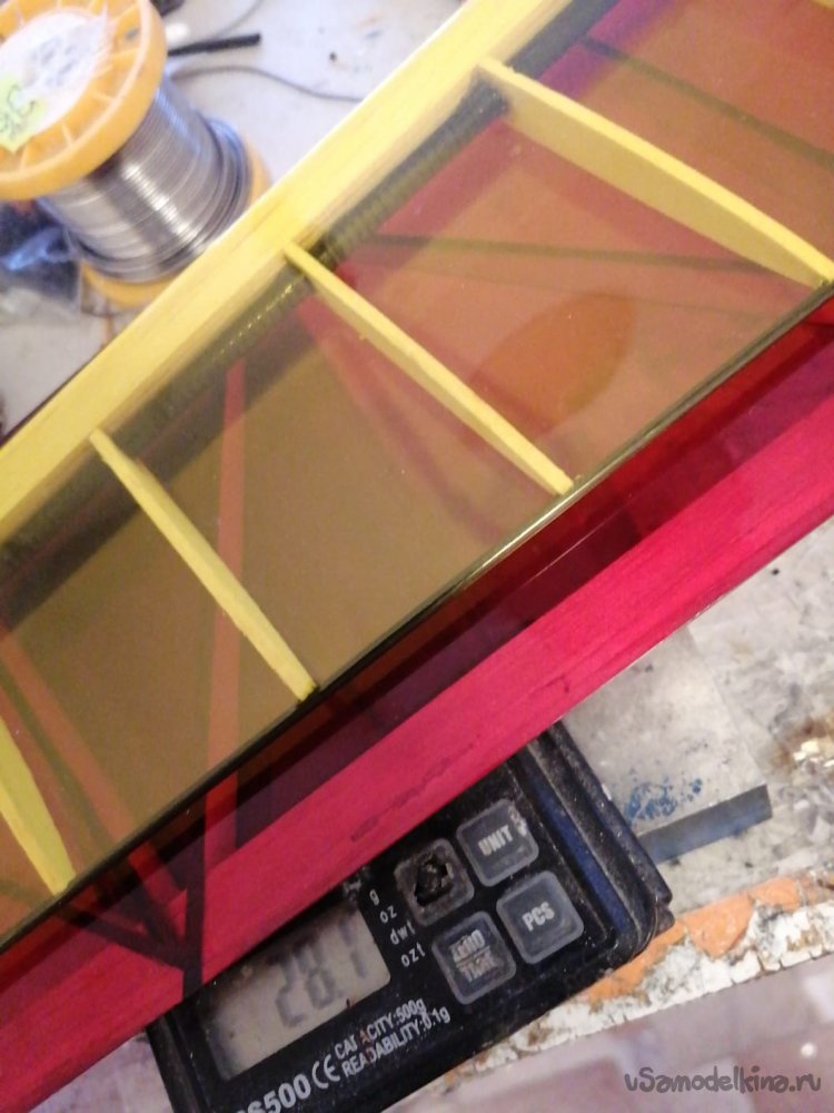 Отгрызли от веса фирменного образца практически 100 грамм. Но денег потратили много на первый образец. Возились долго. Матрицы и фюзеляжа изготовили в моделке. Собирали в кучу дома у моего товарища. Благо он живет в соседнем доме через дорогу.