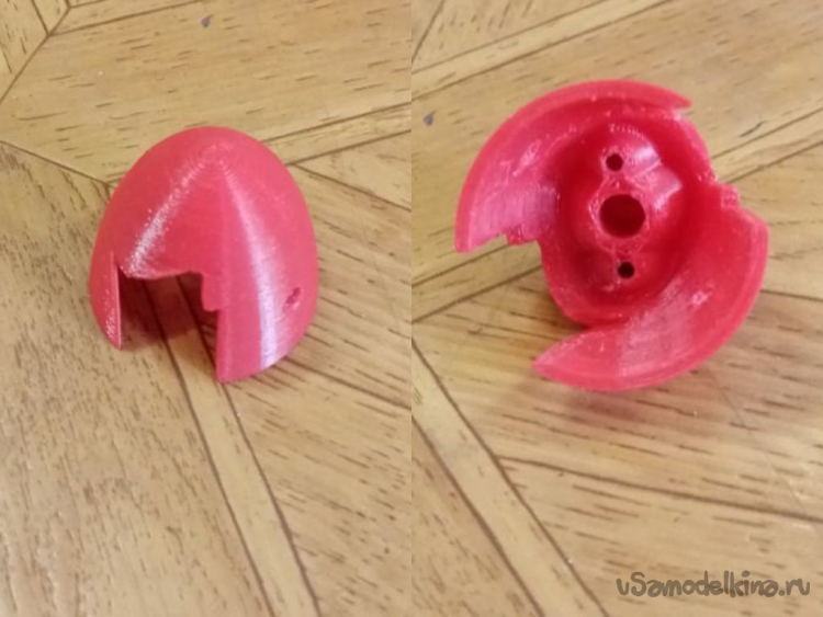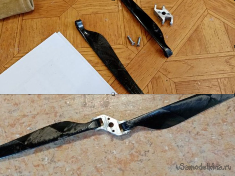 Для складывающегося винта спроектировали «крутой» хаб. В таком положении лопасти значительно плотнее прилегают к фюзеляжу, снижая сопротивление при планировании. В устройстве складывания предусмотрены резинки, которые дополнительно прижимают лопасти к бортам фюзеляжа. На принтере напечатали кок обтекатель.