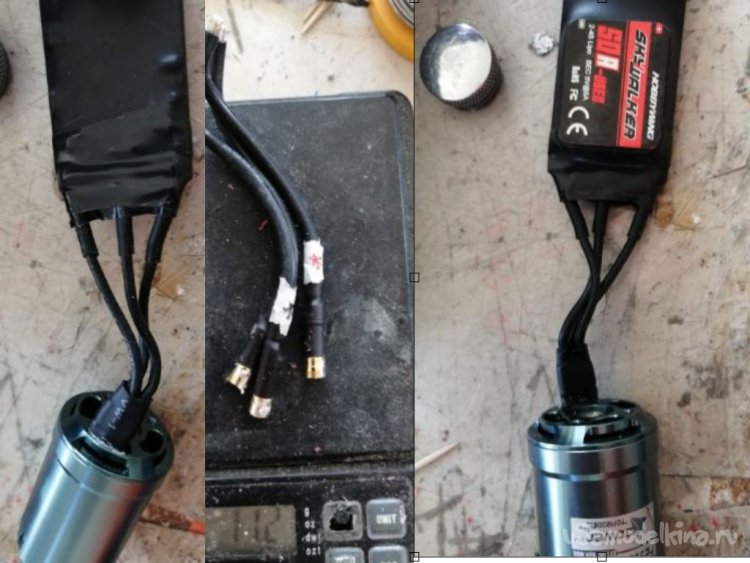 Закуплен специальный мотор для планеров с контактами на задней стенке. Проводе от мотора в двигателю просто припаяли намертво. Так надежнее
