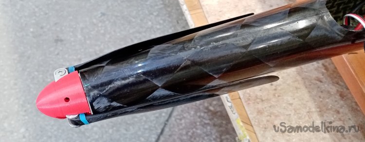 Крышка силового отсека изготовлена отдельно в матрице и крепится на вырезе фюзеляжа карбоновым прутиком.