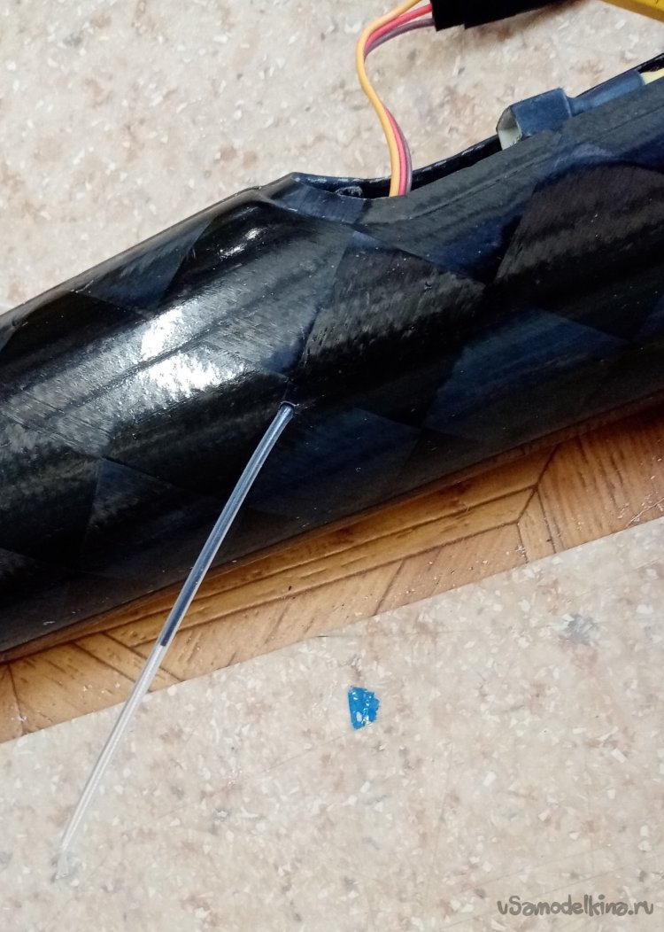 Поскольку уголь не проводит сигналы, антенны приемника выведены на внешнюю сторону фюзеляжа через отверстия. С фюзеляжем пока все. Перехожу к хвостовой балке.