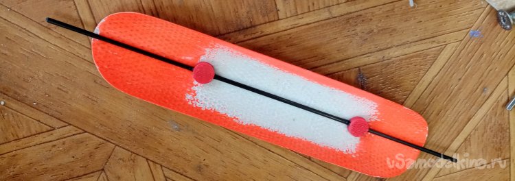 Следующим номером нашей программы руль высоты. Изготовлен по проверенной технологии. Основной силовой элемент-хлыстик от удочки, все элементы усилены полосками карбона.