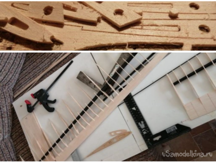 Проанализировав профиль оригинала, принимаем решение немного модернизировать его. А конкретно взять профили знаменитого Дрелы. Составляем программу резки на чпу и запускаем, после некоторых корректировок начинаем получать нарезку нервюр и полунервюр. В стати, станок самодельный изготовленный моим товарищем по борьбе буквально на коленке. Режет просто замечательно и главное точно.