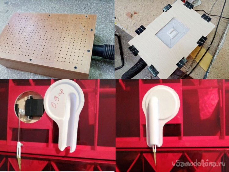 Нет предела совершенству. Решили изготовить защитные крышки на тяги управления в крыле. Проектируем нужный размер распечатываем на принтере. Изготовили небольшой вакуумный станок. Работающий от пылесоса. Нужно подобрать тонкий пластик для деталей. Испробовали много разного. Лучше всего подошли крышки от доширака. И что делать начинаем есть его. Набрали нужное количество крышечек и понеслось. Изготовили обтекатели. Отлично встали на место.