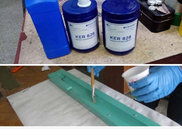 Закуплена эпоксидная смола с отвердителем и еще немного простой стеклорогожки 160 гр. на м2. Начинается самое интересное. Закладка фюзеляжа в матрице. Сначала промазываем матрицу спиртом ПВА ждем высыхания слоя. Наносим смолу и начинаем укладку угля.