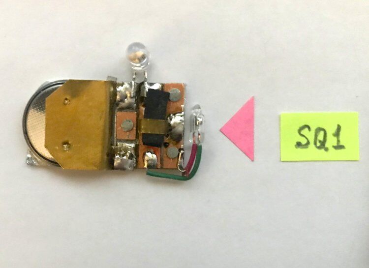 Что нового в статье «Компактный цветомузыкальный индикатор» ( КЦМИ )? 1). Схему подключения КЦМИ к батарейке можно использовать как вариант не традиционного выключателя питания (кнопки, «возвратной кнопки», тумблера). КЦМИ выключен в горизонтальном положении и включается при переводе в вертикальное положение. 2). SF-LED «Перелив» включён без токоограничительного резистора. 3). КЦМИ можно использовать в качестве оптического (не звукового) ключа для передачи знаков кода Морзе. 4). При включении питания более, чем на несколько секунд, SF-LED «Перелив» начинает медленно «цвести». 5). КЦМИ имеет эластичный пластиковый корпус, вырезанный из пластиковой упаковки от йогурта. То есть корпус индикатора (после съедания оплаченного йогурта) оказывается практически бесплатным для радиолюбителя. Если изготовителя индикатора это вдохновит, то при изготовлении корпуса можно использовать степлер, например, фирмы «Berlingo», заряжаемый канцелярскими (тетрадными) скрепками STAPLES № 10 (Скобы № 10). Правда, при «вкраплении» 4 скрепок в края корпуса, корпус превратится в неразбираемый. А для замены батарейки потребуется разгибать скрепки, что вряд ли технологично. ВИДЕО Список сокращений, применённых в статье SF - LED – A slow-flashing LED [ɑ sləʊ-ˈflæʃɪŋ led] - светодиод, переливающийся медленно. КЦМИ – Компактный цветомузыкальный индикатор (название статьи). РРТ - Ребусы радиотехнической тематики. Главной целью изготовления КЦМИ является обучение начинающих радиолюбителей навыкам работы с листовыми материалами, формовке и пайке выводов электронных компонентов, а также простым методам проверки радиоэлектронных компонентов с помощью мультиметра. Основной недостаток поделки. Для изготовления самодельной кнопки и контакт-пружины КЦМИ требуется довольно дефицитная пружинящая бронза (толщиной 0,3 … 0,4 мм). Важная отличительная особенность. Для изготовления корпуса КЦМИ не требуются большие затраты времени. Автор потратил (с учётом съёмки и фотографирования) не более двух часов. Для изготовления самодельных составных частей потребуется большее количество времени и усидчивость. Самоделкам индикатора отдано предпочтение перед покупными изделиями с той целью, чтобы КЦМИ имел как можно меньшую толщину и хорошо помещался в пластиковый корпус - пакет. Всё большую популярность у покупателей обретают товары из КНР. В интернет-магазине «Алиэкспресс» можно заказать по предоплате и получить за несколько недель как готовые товары, так и конструкторы для радиолюбителей по вполне доступной цене. Датчик наклона ртутный SQ1, имеющий наименование Переключатель наклона Diymore 3MM 5MM ( https://aliexpress.ru/item/1005002033403204.html?ysclid=mkdbxtcrgi85241666&sku_id=12000018482061447 ) можно заказать в магазине «Алиэкспресс» в количестве 10 штук (одним лотом) за 60 рублей + 59 рублей за доставку. Параметры SF - LED «Перелив» В КЦМИ используется cветодиод, переливающийся медленно - A slow-flashing LED [ɑ sləʊ-ˈflæʃɪŋ led]. Сокращённо - SF-LED [эс-эф-лед]. Можно сказать, что этот светодиод является миниатюрным псевдо-воплощением идеи композитора Александра Николаевича Скрябина (1872 - 1915). Скрябин визуализировал свои ассоциации в постановке музыкальной поэмы «Прометей» («Поэма огня»). Для этого он создал световую партитуру, и стал первым в мире композитором, который использовал «цветомузыку», формируя у реципиентов (слушателей и зрителей) «цветной слух». SF-LEDs «Перел