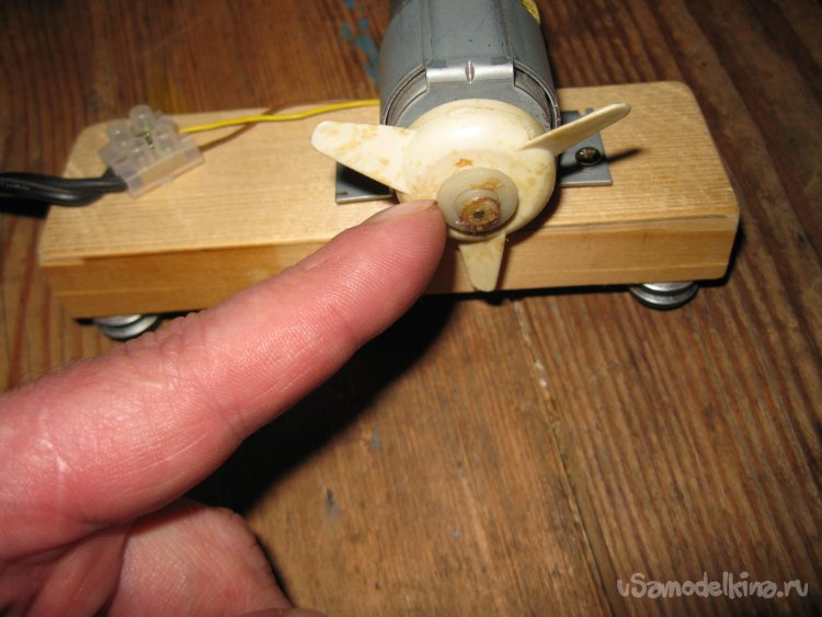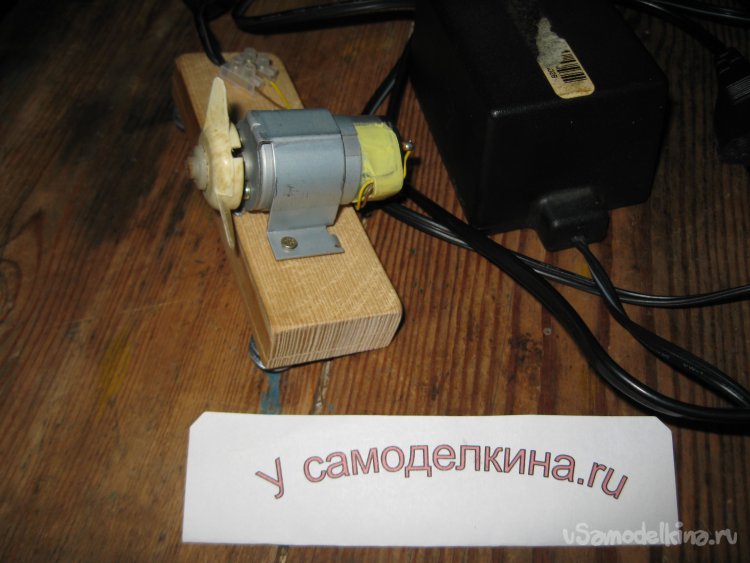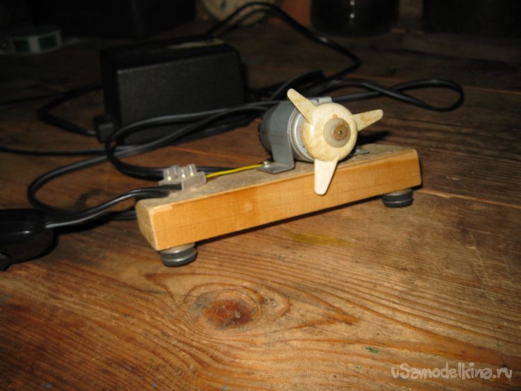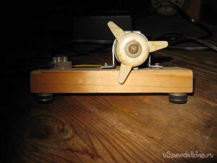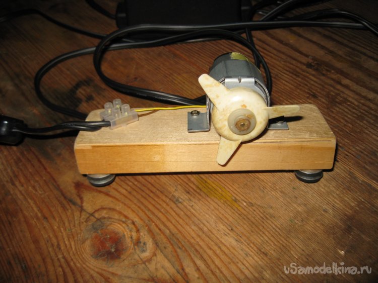 Далее необходимо было установить мотор с крыльчаткой на какую-нибудь подставку. Для этого я подобрал небольшой деревянный брусок.