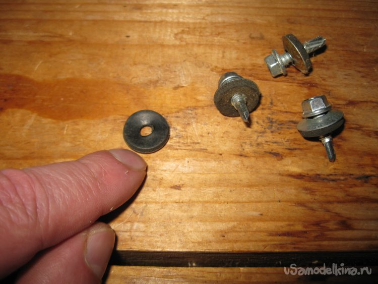Для этого я использовал шайбы с резиновым основанием от кровельных саморезов.