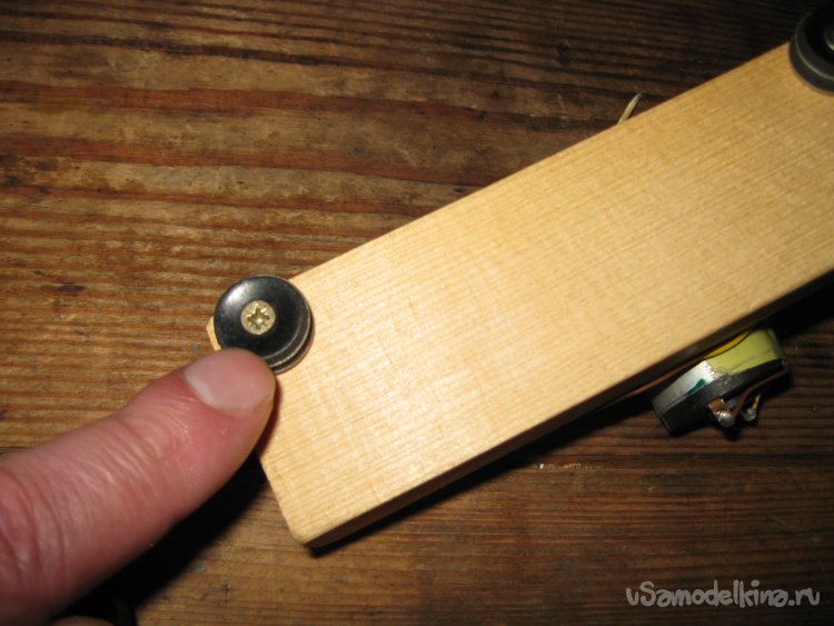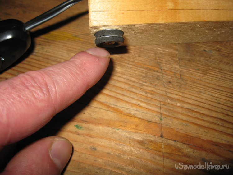 Сначала я при помощи небольших шурупов прикрутил к нижней передней части бруска по одной такой шайбе, но наклон оказался мал, поэтому я добавил еще по одной.