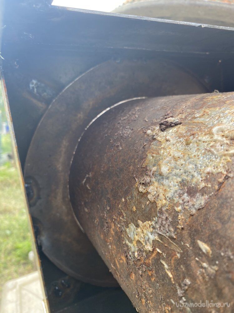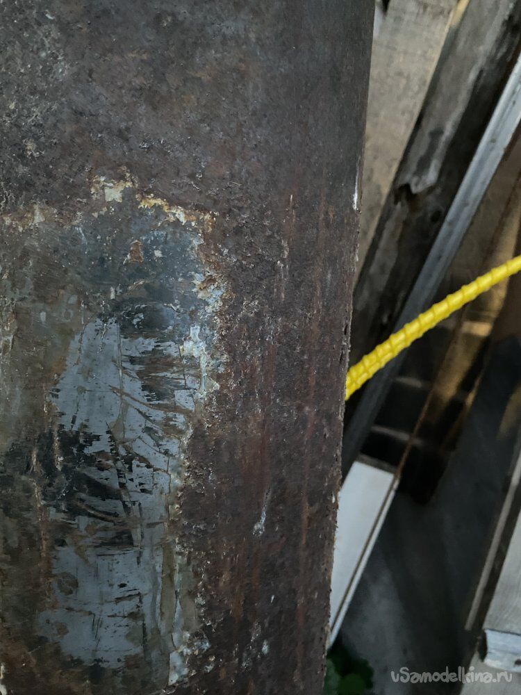 Сперва я хотел полностью отчистить нужные мне трубы, но это оказалось слишком трудоёмко, и я решил, что никому эта ржавчина не помешает внутри моего дымохода)))