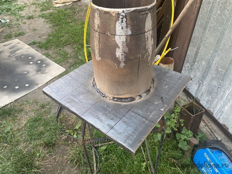 На фото видно, что на трубу я одел картонный квадрат с круглой прорезью, диаметром 200 миллиметров, чтобы убедиться, что тонкостенная труба из нержавейки с таким-же сечением сядет на стальную на нужном мне уровне по высоте.