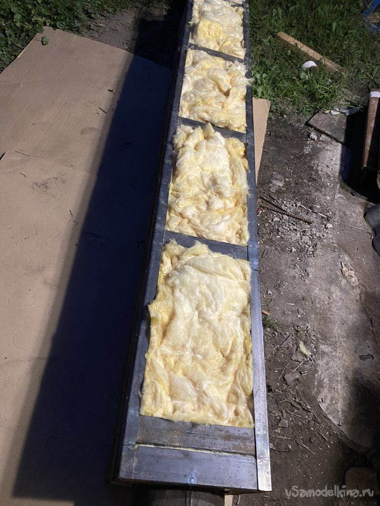 А пока я, через не закрытую пока жестью, стенку, заполнил стекловатой короб, старательно подпихивая вату со всех сторон: