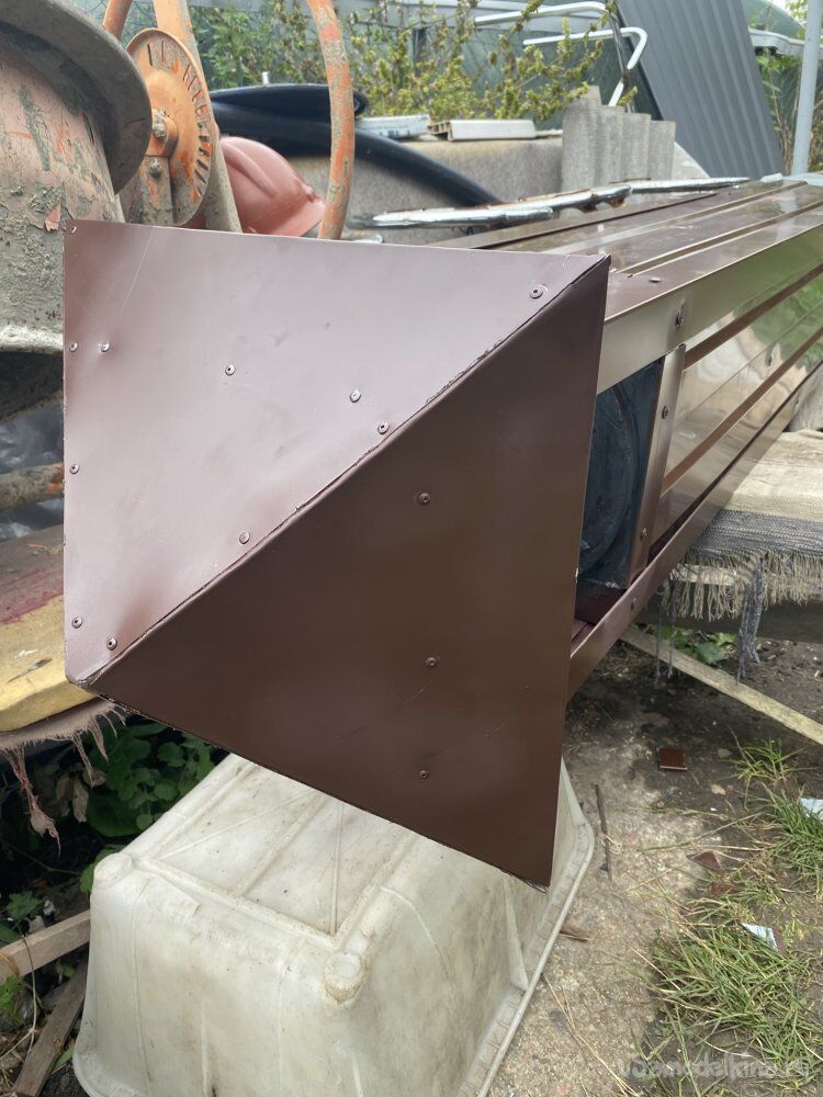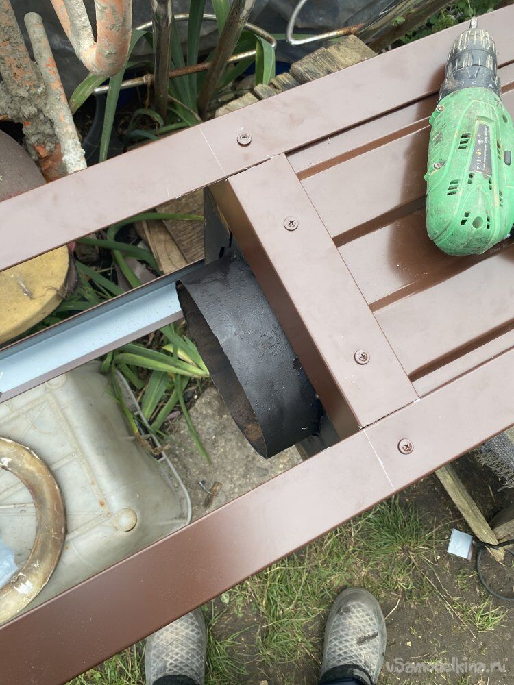 Так как листогиб я так и не собрался доделать, пришлось заказать готовых уголков их жести с полимерным покрытием, размером 50х50 миллиметров. И ми я закрыл углы, выпустив их в верхней части для будущего крепления зонта: