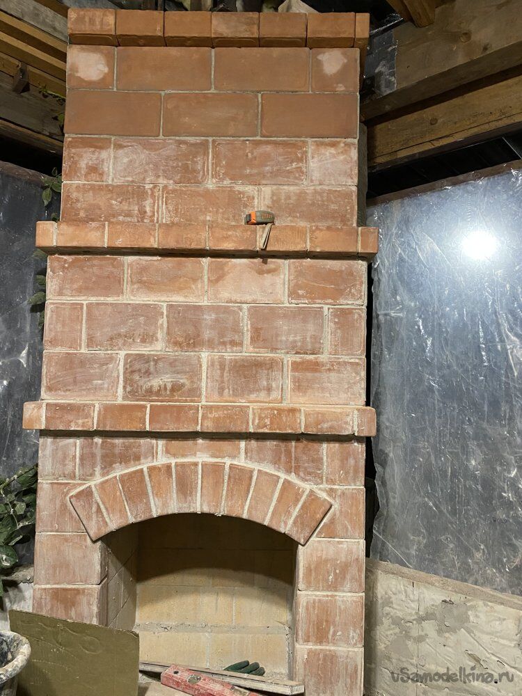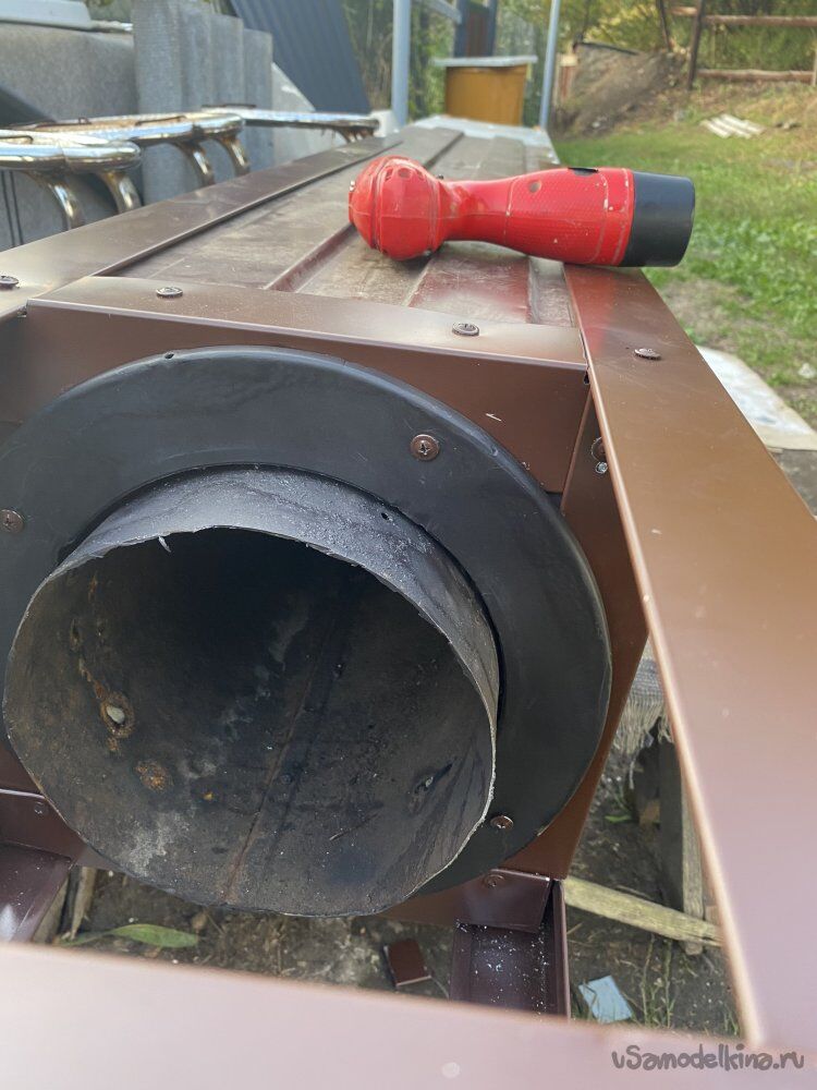 Итак, на момент описываемых действий, камин у меня пока оканчивался металлической трубой с зауженным концом:
