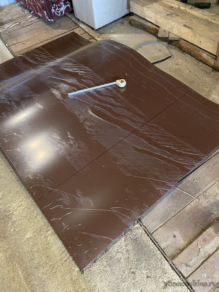 Теперь нужно изготовить зонт. Для его изготовления использовал гладкий лист с полимерным покрытием: