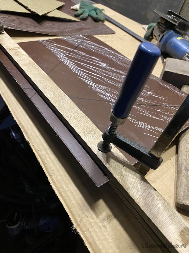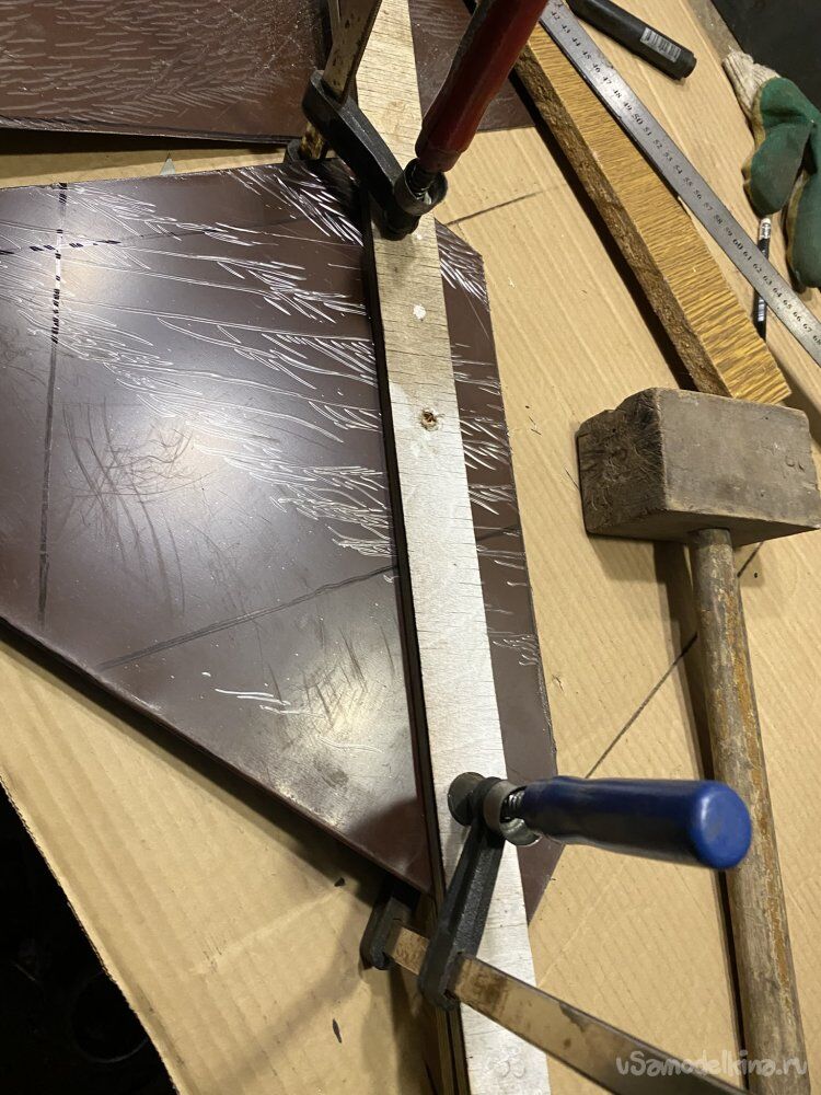 Потом перенёс всё на металл. Гнул киянкой, зажав между двух фанерок: