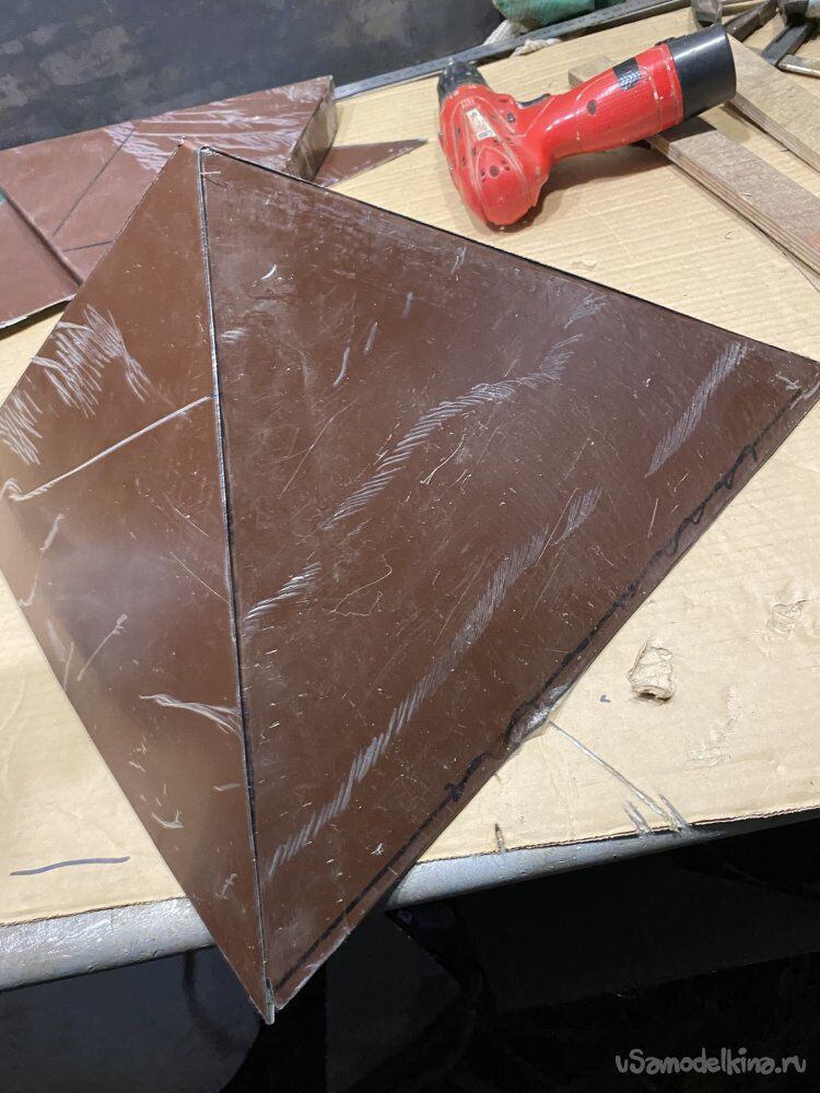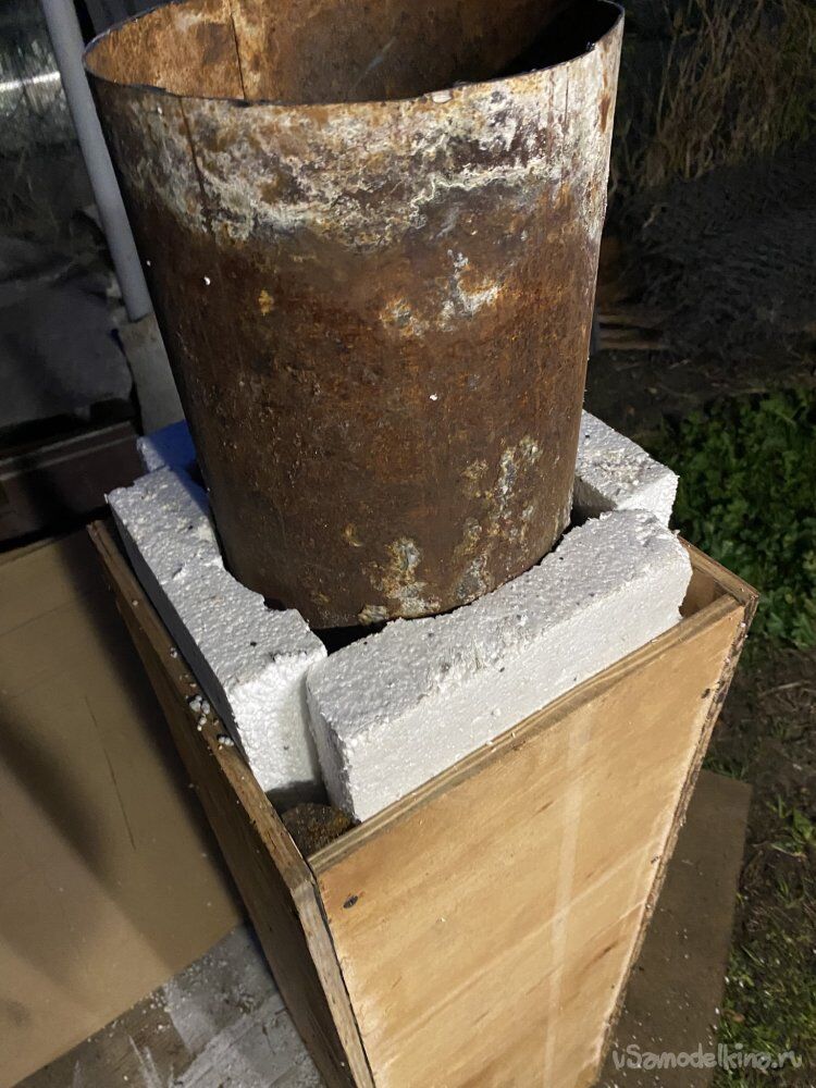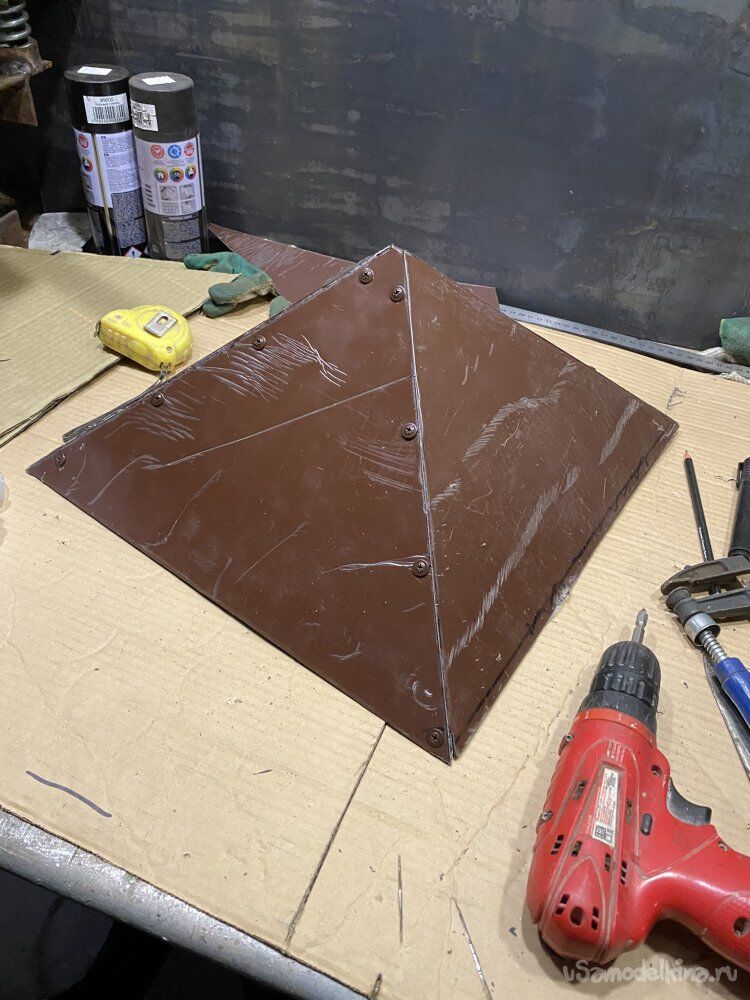И, думая над этим вопросом, я решил сделать лёгкий фанерный шаблон-имитатор тяжёлого дымохода.