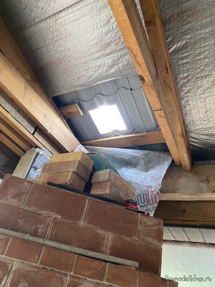 Конечно-же, я не собирался сооружать такой высокий дымоход из кирпича. Изначально я решил, что сделаю его металлическим, утеплённым.