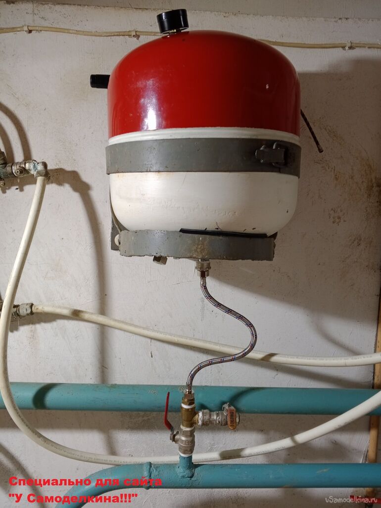 Доброго Всем времени суток и хорошего настроения! Хотелось бы рассмотреть ситуацию, которая получилась у меня… Вначале зимнего отопительного сезона, при подготовке системы к эксплуатации, подкачивая давление, через золотник бачка, обратил внимание на то, что из него пошла вода. Вывод – или годами скопившийся конденсат, или порыв мембраны. Но давайте все по порядку. Отопительная система в моем случае автономная, замкнутого типа, с мембранным расширительным бачком, долив происходит из водопроводной системы. Вообще последнее время стал замечать падение давления в системе. Для поддержания сухости, и комфортной температуры в комнатах дома, котел в межсезонье выставлен на температуру 350 – 400 С. При очередной проверке системы, оказалось, что самый верхний радиатор отопления, с установленным краном слива, или стравливания воздуха, грелся наполовину. При открытии крана выходил воздух и чуть воды, все-таки давление поддерживал где-то около 1,2 атм. По ТТХ котла, больше 1,5 атм., повышать давление в системе нельзя. После этого начал накачивать давление в бачок, при помощи велосипедного насоса и обратил внимание, на резкие дергания стрелки манометра, контролирующего давление в системе. Воздух давит непосредственно на воду, а не на резиновую мембрану, а значит расширительный бачок, как компенсатор давления в системе, не работает. Решение, демонтаж бачка, его вскрытие и определение причин неисправности. Последний раз, похожее мероприятие проводил года 3 назад, а может и больше. Демонтировал бачок, перекрыв отсекающий кран, сливать воду не стал, чтобы понять, что творится внутри. По весу бак был тяжелый, при простукивании, звук глухой, значит вода и в металлическом корпусе. Открутил фланец. Слил все из бачка и мембраны. Намыл корпус и мембрану. Визуально, мембрана была целая, при наполнении водой, протечек не наблюдалось. Может при подаче давления в систему, при раздутии мембраны, появлялись микротрещины, и вода в течении продолжительного времени просачивалась под корпус. Тему конденсата, который бы образовывался на стенках мембраны и металлическом корпусе не исключаю, но и практически столько влаги из подкаченного, за все время, воздуха образоваться не может (бак 18 литровый). Решил мембрану приобрести новую, дабы исключить основную, как я думаю, причину протечки воды под корпус. Для того, чтобы как-то визуализировать, что творится в бачке, а именно под металлической его частью, решил добавить манометр и сливной штуцер, чтобы «контролировать» наличие воды под корпусом. И так начинаем. Для самоделки нам понадобятся…. Материалы и инструменты: Материалы: Гайка 1/2. Герметик силиконовый. Манометр 1/4. Мембрана для бачка, на 18 литров. Лента ФУМ. Переходник с 1/4 на 1/2 с внешней резьбой. Пробка 1/2. Проход сантехнический 1/2. Шланг подводной, гайка – гайка, L - 40 мм. с фитингом, для перехода на 3/4. Инструменты: Дрель. Ключи, набор головки по работам. Ключ газовый. Напильник круглый. Сверло многоступенчатое. ШАГ 1 Подготовка технологических отверстий. При помощи дрели и ступенчатого сверла, в верхней и нижней части корпуса бачка подготовил отверстия, для установки манометра и контрольно – сливного штуцера. ШАГ 2 Сборка и опрессовка бачка. Сборка прошла не однозначно. Сливной прикрутил без проблем. Устанавливая манометр с переходником, чуть не остался с бачком на руке.