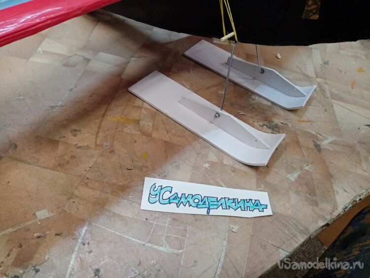 Наш ученик изготовил самолет. И в преддверии зимы поставил его на лыжи. Но не задалось. Изготовленное приспособление не выдержало практического применения. Размер оказался маловат и модель проваливалась в рыхлый снег. Материал так же оказался жидковат. Не удивительно, конструкция изготовлена из пенопласта. После консультации, решили переделать все. Для начала выбрали более прочный материал, а конкретно, рекламный пластик. На подошвы лыж пошел достаточно легкий материал в 2,5 мм. На крепления лыж в 3 мм. Площадь поверхности также увеличили практически в два раза. У нас в моделке есть немного белого рекламного пластика. Подарок фирмы. Выбираю подходящий материал из кучи. Нужно разметить заготовки. Вырезаю подошвы лыж. Для начала нужно загнуть носики заготовок. Процедура достаточно простая. Разогреваю пластик при помощи строительного термопистолета. Стараюсь не перегреть. В качестве защиты рук при работе с горячими изделиями применяю кожаные перчатки. Разогретый материал загибаю на металлической трубе, достаточно большого диаметра. Эта операция прошла успешно. Носики загнуты. Предварительно разметив материал, продолжаю работы. Из более толстого пластика вырезаю вертикальные пластины крепления. Сразу просверливаю отверстия для установки оттяжек. Они будут фиксировать лыжи в полете в определенном положении. Нужно приклеить детали. Прикладываю вертикальную пластину к подошве и капаю несколько капель циакрина для закрепления. После застывания клея проливаю детали по шву с двух сторон. Применяю в работе мой любимый циакрин GRIFON, с трубочкой. Благодаря хорошей текучести циакрин отлично растекается по шву. Лыжи готовы. Нужно изготовить крепления к корпусу. Для этой цели нашелся прутик из хромированного железа достаточной длины. Размечаю нужные размеры при помощи фломастера. Ориентируюсь по старому образцу. По разметке сгибаю прутик в тисках. Поправляя сгиб молотком и плоскогубцами. На концах стойки лыж нужно нарезать резьбу. В бой вступает лерка и смазка. Спустя некоторое время операция завершена. Резьба готова на двух концах. Примеряю стойки к корпусу и к лыжам. Примерки завершились положительно. Следующая операция, изготовление элементов крепления шасси к фюзеляжу. Для этой цели выбираю пластик белого цвета толщиной в 4 мм. От целого куска отрезаю парочку прямоугольников по размеру. По разметке выпиливаю паз под стойку. Операция простая выполняется при помощи моего модернизированного лобзика. Склеиваю половинки циакрином. Закрепляю площадку на конце стоек. Рассчитал хорошо. Все подошло. Для крепления на стойках лыж. Выбрал четыре болтика с фиксацией и 4 шайбы. Конструкция собрана в кучу. Готовы лыжи вместе со стойками. Примеряю к корпусу. Можно устанавливать. Проект закончен, можно и по чайку. Мой любимый ЧАРЛИ КЕМБЕР со вкусом сыра. И Вам рекомендую.