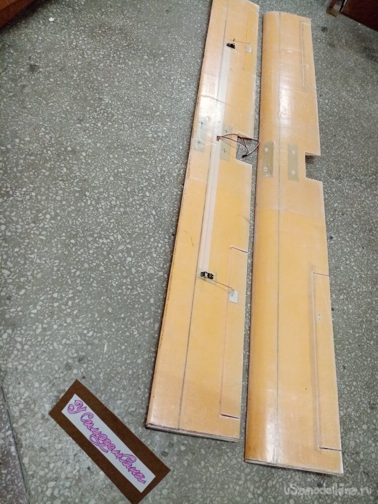 Некоторое время назад нам нужно было изготовить четыре одинаковых крыла для моделей. В этой статье расскажу о технологии изготовления крыльев размахом 160 см. Вырезанных из утеплителя и оклеенных стеклотканью немного о ошибках допущенных в процессе. Размер и профиль заранее был оговорен. В программе «Профили» загнали нужные параметры для резки. Пару лет назад получили гранд и закупили комплектующие для станка ЧПУ. Для резки пенопласта раскаленной струной. Но есть тонкость изначально поставили нихромовую струну. При резке образовывалось на поверхности много «волос». Но знающие товарищи посоветовали использовать проволоку для управления кордовыми моделями. Получилось просто замечательно. Рез гладкий и ровный. К тому же у нас осталось достаточное количество её от прошлой жизни. И так файл загружен, проблема. Не можем на нашем станке резать заготовки длиной более одного метра. 160 не получается. Придется каждое крыло резать из двух половинок по 80. Из утеплителя оранжевого цвета нарезали заготовок нужного размера и бодро режем. Нужное количество половинок готово. Для стыковки половинок крыла нужно торцевать заготовки и желательно точно. Поэтому на столе собираем прибор из двух металлических угольников и струбцин. При помощи лучковой пилы с нихромовой нитью точно режем торцы заготовок. Лонжероны усиления выпиливаю из шлифованной фанеры толщиной в 4 мм. Товарищи просили увеличить прочность. Согласовал с ними варианты усиления. Чтобы склеивать половинки крыльев. Нужен стапель. Разрезаю остатки утеплителя после резки крыльев. Соединяю половинки и на таком импровизированном ложементе склеиваю половинки крыла при помощи отличного клея ПУР 500. После склейки и высыхания зачищаю поверхность. Размечаю положение рамочек установки сервоприводов и элементов усиления в центральной части крыло под болты крепления к фюзеляжу. Затем нужно разрезать готовое крыло для установки фанерного лонжерона. Процедуру провожу при помощи линейки и канцелярского ножа с выдвижным лезвием. Стараюсь резать строго вертикально. На маленьком станочке напилил фанерные заготовки элементов усиления. Лобзиком нарезал рамок под установку сервоприводов. Все фанерные детали нужно утопить в массив крыла заподлицо. Из нихромовой проволоки изготовил резаки нужного размера. Настроил на рез в глубину на 4 мм. По размеру вырезаю углубления в нужных местах. Примеряю закладки. Все хорошо подошло. Склеиваю половинки крыла и лонжерона вместе. Не забываю фанерные закладки. Применяю в этой операции мой любимый ТИТАН. Склейку фиксирую при помощи малярного скотча. На сегодня все, крылья сохнут. Второй день работы над крыльями. Все склеилось. Шлифую поверхность утюжками со шкуркой различной зернистости. Последняя операция в подготовке к оклеиванию стеклотканью. Нужно прорезать в крыле каналы установки проводов управления к сервоприводам. Собрал из фанерки и кусочка нихрома колечко нужного диаметра. На пробном кусочке утеплителя корректирую размер. Достаточный для протаскивания кабеля с разъемами. Затем размечаю трассу на крыльях и прорезаю. Место прореза закрываю полоской малярного скотча. При формовке в канал не должна попасть эпоксидная смола. Для прижатия обшивки к ядру крыла собираю из половинок два стапеля. Верхнюю и нижнюю половинки, торцую на самодельном п