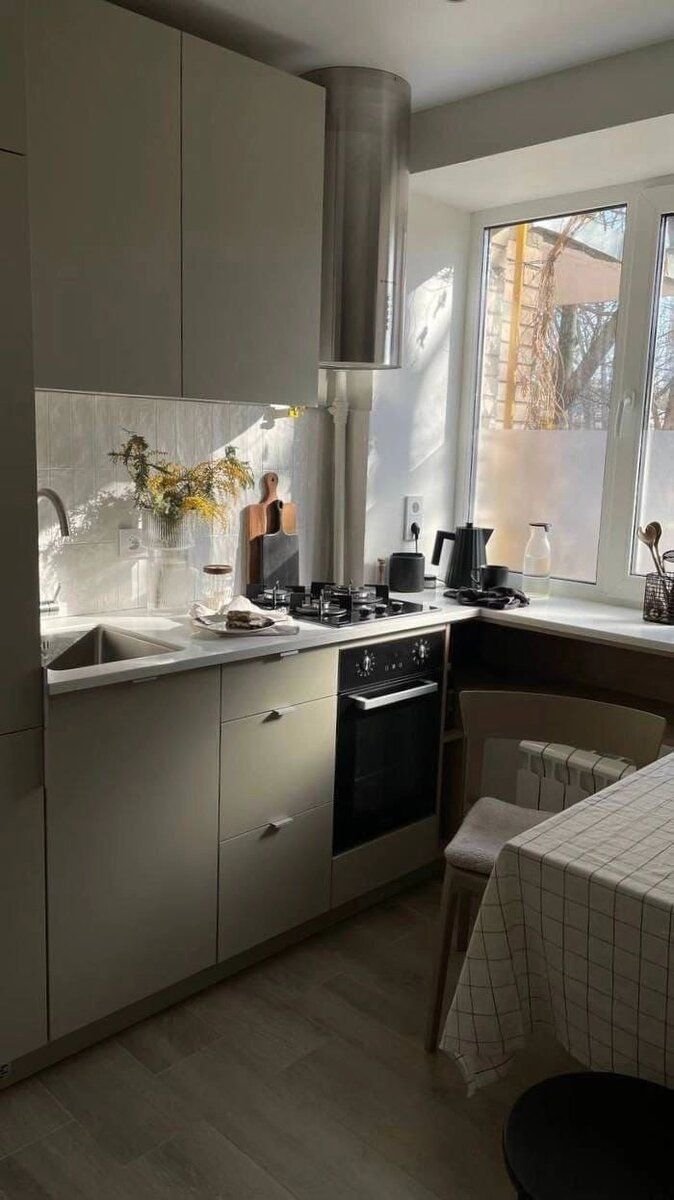 На кухне в минималистическом стиле стараются не использовать текстиль, за исключением обивочного материала для мебели. Вместо плотных и массивных штор используют жалюзи или рулонные шторы. В некоторых случаях окна в кухне не занавешивают вообще.