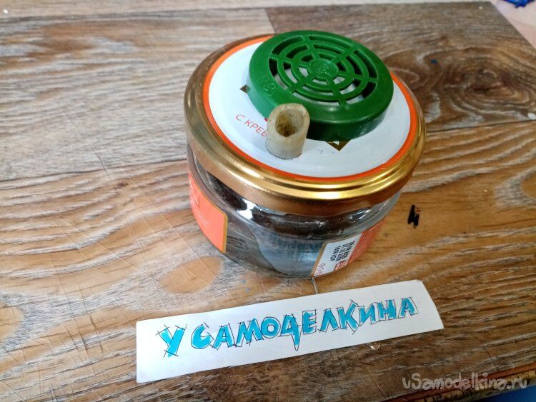 Для промывки аэрографа изготовил баночку номер один. Достаточно давно. Основной принцип устройства, при промывке не пылить остатками краски и растворителя в окружающее пространство. Это пространство будет засоряться, для дыхания тоже вредно. Принцип работы достаточно простой. В крышке имеется трубочка, конец которой немного не доходит до дна. В баночку наливается вода, аэрограф с промывочной жидкостью вставляется в трубочку. Вся гадость пробулькуивается через водный затвор и там остается. После работы нужно просто вылить грязную воду. И тут в руки мне попалась защитная маска. Слегка древнего изготовления. Свои функции она отказалась выполнять ввиду деградации поролона. Демонтировал клапана. Может, пригодятся в хозяйстве. Вот и пригодился основной клапан. Нечаянно попался на глаза. Возникла идея еще одной промывочной банки, с установленным клапаном и фильтром. Не хуже чем фирменное изделие. Например, такие варианты. Для тех, кто интересуется. https://www.wildberries.ru/catalog/27854056/detail.aspx https://www.wildberries.ru/catalog/27846879/detail.aspx В магазинной баночке есть еще и сменный фильтр. Как руководство к действию, буду делать с фильтром. У меня будет еще и клапан, препятвующий парам растворителей вылетать при перерывах в работе. Идея есть приступаю к реализации. Подготовка основного элемента конструкции слегка затянулась. Нужно уничтожить содержимое баночки. Спустя некоторое время она опустела. На столе разложил нужные части для реализации проекта. Баночка с крышкой клапан. Разбираю зеленый цилиндрик. Нужно замерить диаметр. Поступаю весьма просто. Заклеиваю отверстие малярным скотчем. Обрезаю по краю треугольным ножом для творчества. Получается неплохой шаблон. Наклеиваю на крышку скотч. По краю обвожу разметочным карандашом с твердосплавным стержнем. Подбираю сверло нужного диаметра и сверлю отверстие внутри обозначенного круга. При помощи ювелирного лобзика и пилки по металлу прорезаю отверстие. Но есть нюанс. Достаточно трудно резать тонкий металл. Поэтому при работе держу лобзик наклонно, таким образом, пилка режет уже не тонкий металл вертикально, а более толстый, когда наклонена. Меньше риска заклинивания пилки и её поломки. Отверстие нужно несколько меньшего диаметра. В процессе работы подгоню точнее под размер клапана. Он должен плотно фиксироваться и желательно без отверстий по краям. Отверстие пропилено. В хозяйстве есть небольшой рулончик фильтровальной ткани. Отрезаю кусочек от этой салфетки. Немного больше диаметра вырезаю ножницами 4 кружочка. Начинается пляска с бубном. Нужно закрепить салфетки таким образом, чтобы работал клапан. И можно было менять загрязненный фильтр. Справился. Подобрал большого диаметра сверло и организовал отверстие под силиконовую трубку. В нее будет вставляться аэрограф. Она должна достаточно плотно сидеть в отверстии. Поэтому делаю слегка меньшего диаметра. При помощи мелкого надфиля подогнал отверстия более точно. Клапан с фильтром и трубка плотно встали в крышку. Испытания прошли успешно. Новое изделие заняло место у компрессора. Для гарантии закрепил магнитом. Проект закончен. Всем спасибо.