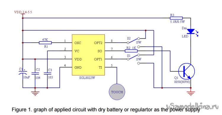 SGL8022W представляет собой одноканальный сенсорный чип для регулировки освещенности светодиодов. Этот чип может управлять