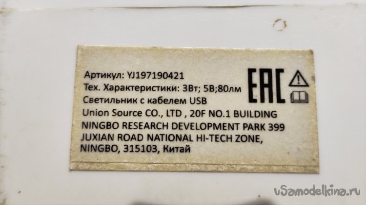 На табличке характеристики, из которых ясно, что светильник без аккумулятора.