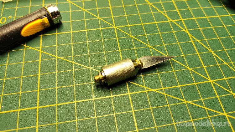 Пробую аккуратно вскрыть. Для отвертки щели очень маленькие. Попробовал рассоединить скальпелем. Неудача, лезвие скальпеля вылезло из держателя. Держатель ранее был поломан, склеил его на эпоксидный клей, видно клей попал под конец резьбы цанги, цангу нет возможности зажать. Нашел подходящую по диаметру граверную шайбу.