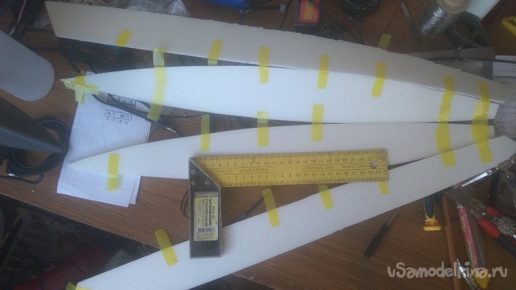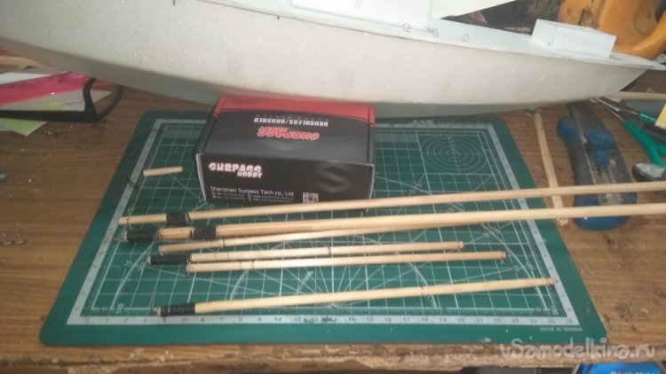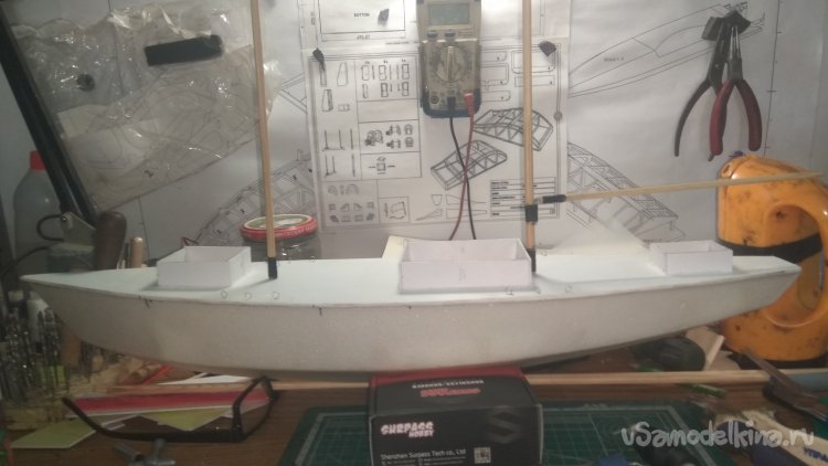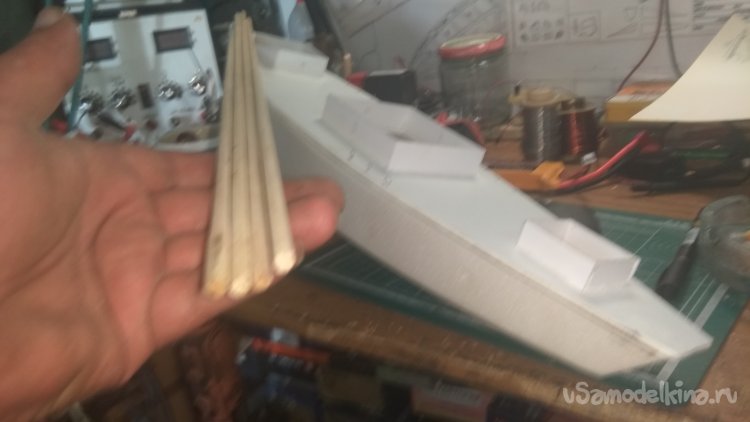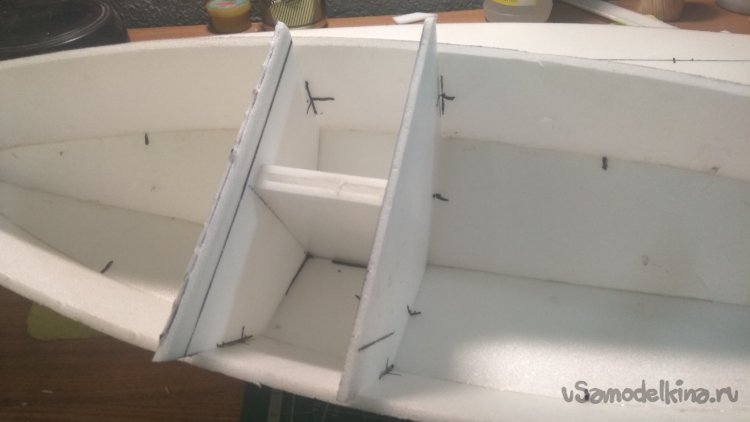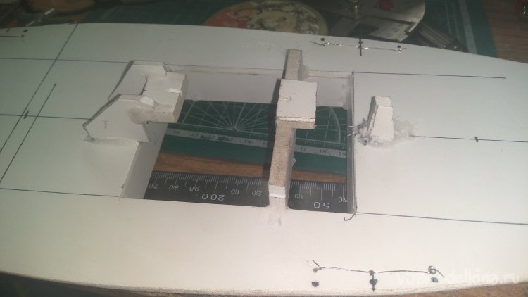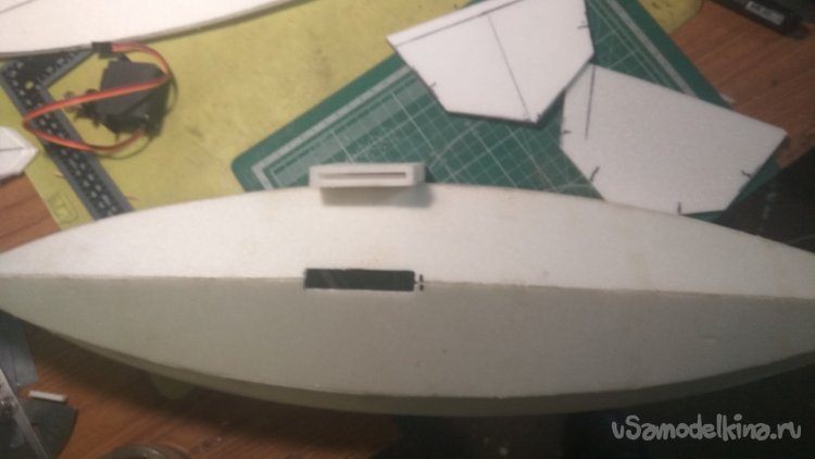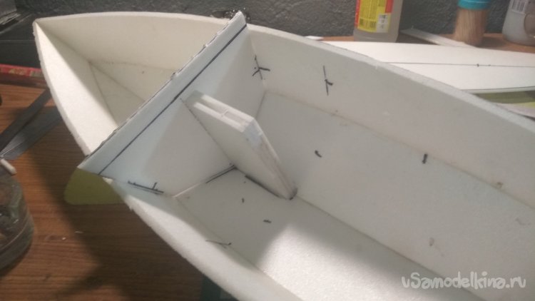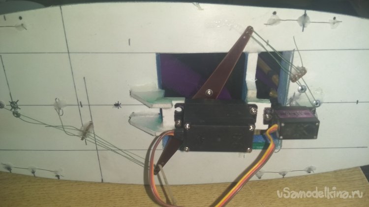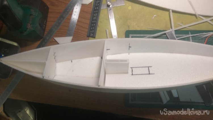 Так же из потолочной плитки делаем фальш - палубу с отверстиями для сервомашинок.