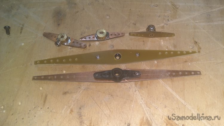 Для сервомашинки парусной делаем спецкачалку с удлиненными плечами из текстолита . Подключаем серву к сервотестеру и проверяем ее работу и отмечаем крайние положения плечей качалки на эти места сделаем крепления шкотов .