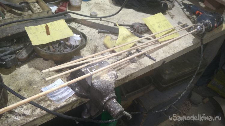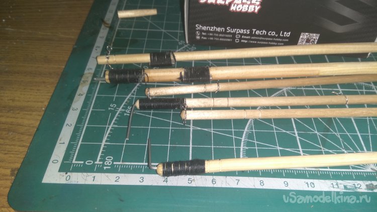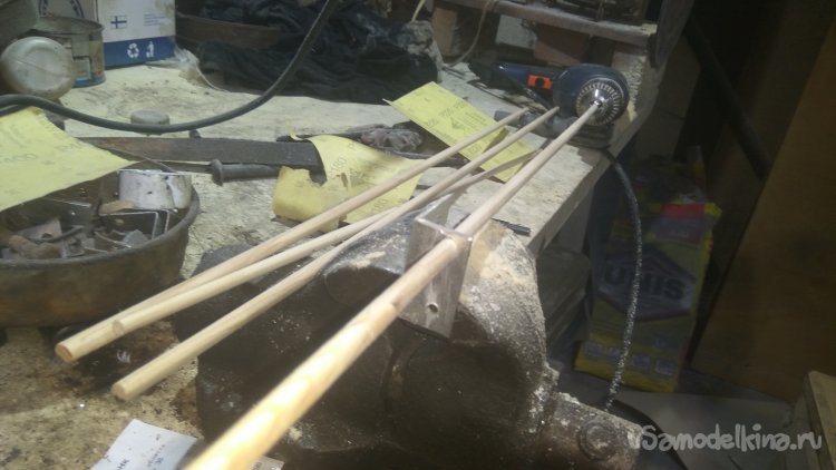 У меня из штапика получилась 4 заготовки выбрав 2 самые длинные и ровные для мачт из оставшихся двух будем делать гики.