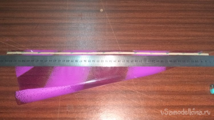 Далее приклеиваем задний усилитель шкаторины и имитацию верхнего гика если это нужно