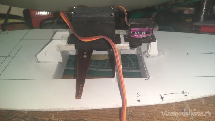 дальше делаем крепления для сервомашинок одна сервомашинка большая для управления всеми 4мя парусами и вторая маленькая 9г для управления рулем но все они с металлическими шестеренками