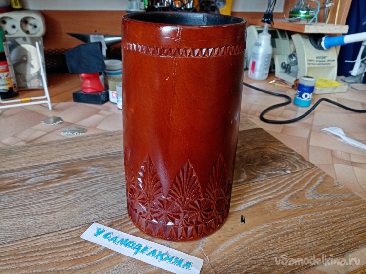 Осталась у меня дома самодельная деревянная ваза. В прошлой жизни занимался резьбой по дереву. Даже чемоданчик с инструментом лежит в уголке. Из всего разнообразия поделок остались в хозяйстве крохи. Из не малого количества досок для разделки, шкатулок, настенных бра и прочего. Что-то дарил, что-то ломалось.