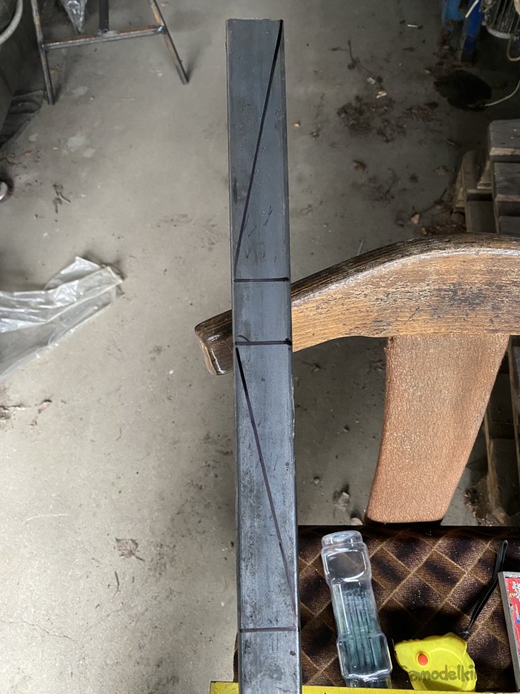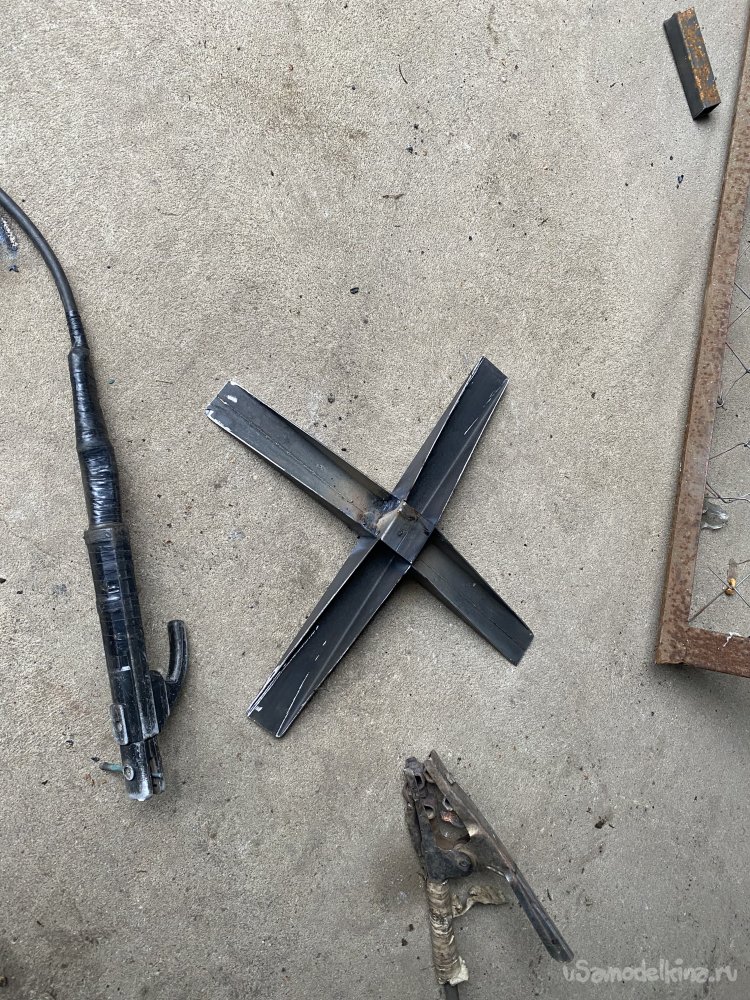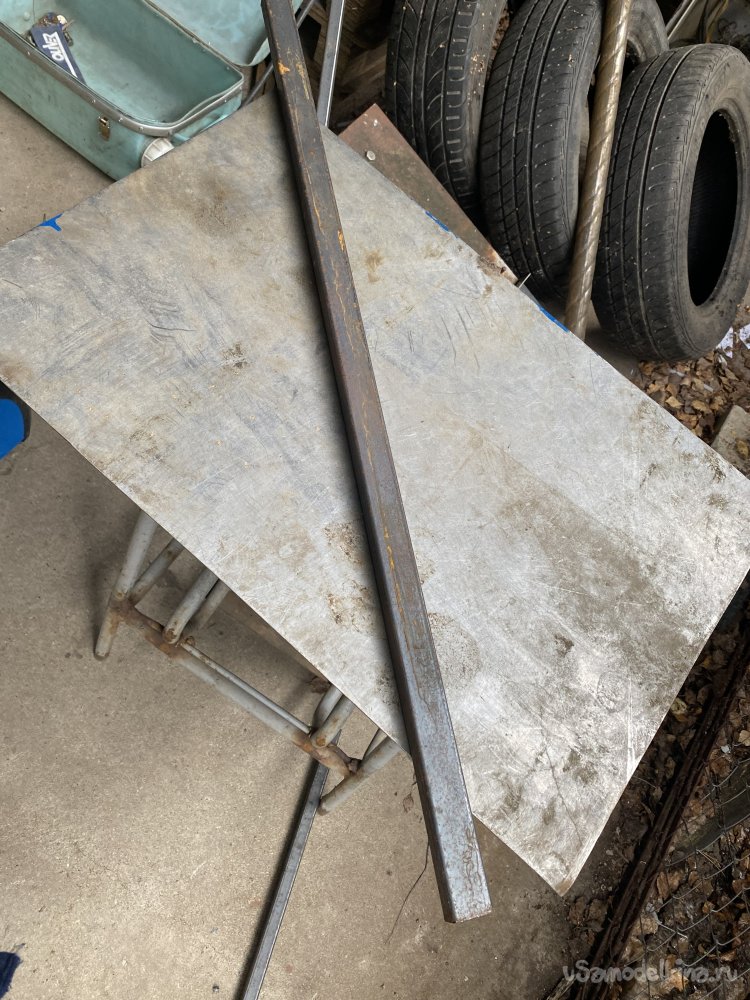 Сверху надо сделать крестовину, к которой будет крепиться столешница. Её я решил сделать из профильной трубы, сечением 40х40 мм. В запасах был отрезок такой трубы: