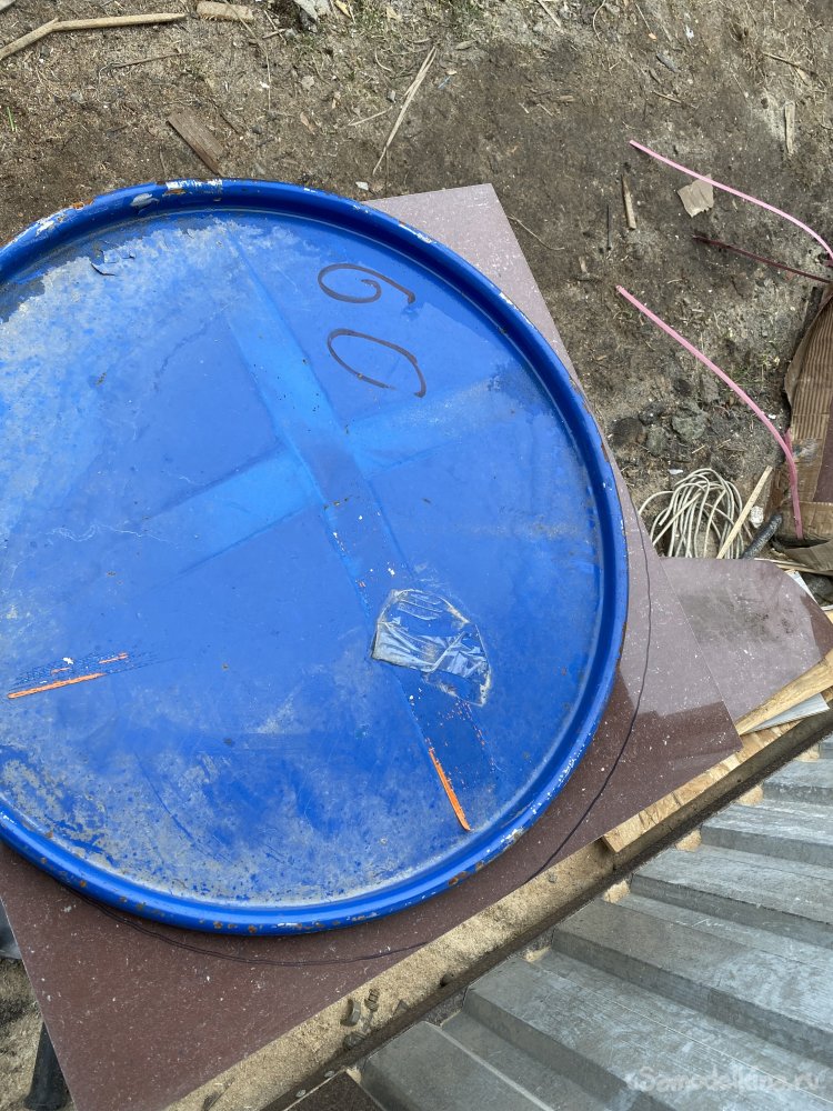 И наткнулся взглядом на крышку от металлической бочки. Готовый шаблон!!! Она-же, как раз, шестьдесят сантиметров в диаметре!!!