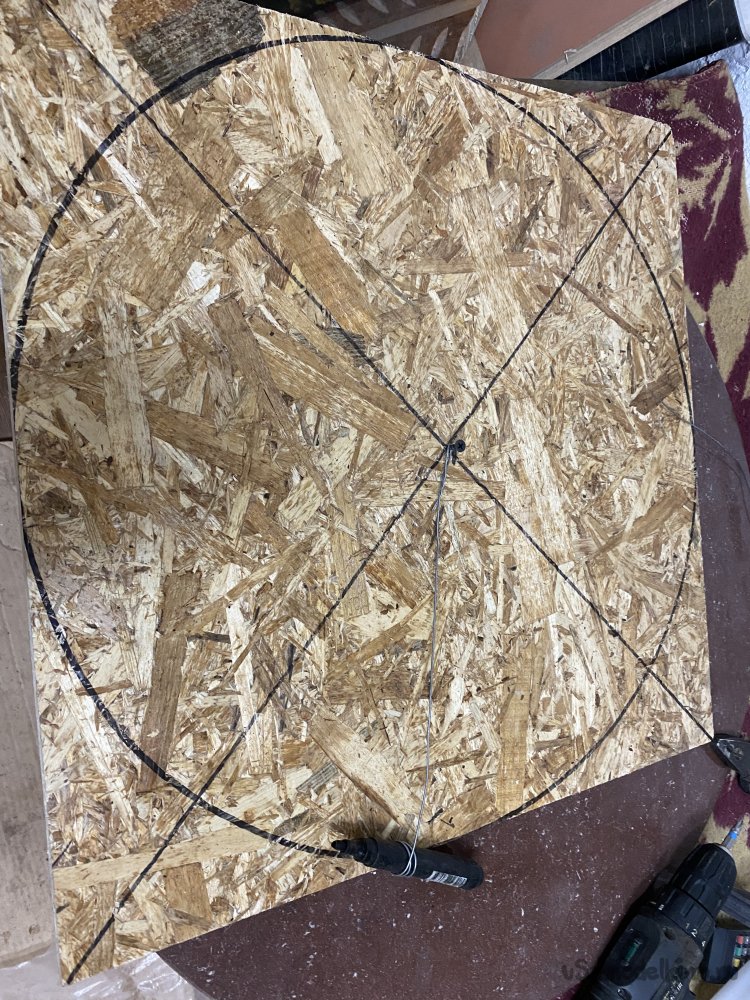 Найдя центр, выпилил круг, диаметром 50 сантиметров. Тут уж проблем с циркулем не возникло)))