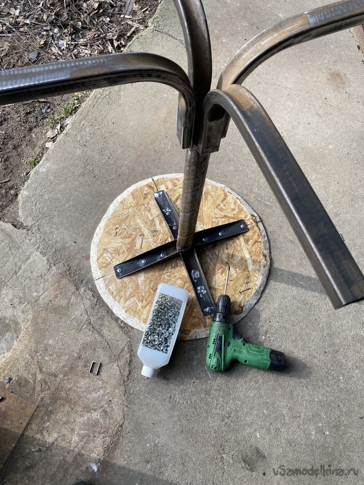 Шурупами прикрепил крестовину к основанию столешницы из ОСП: