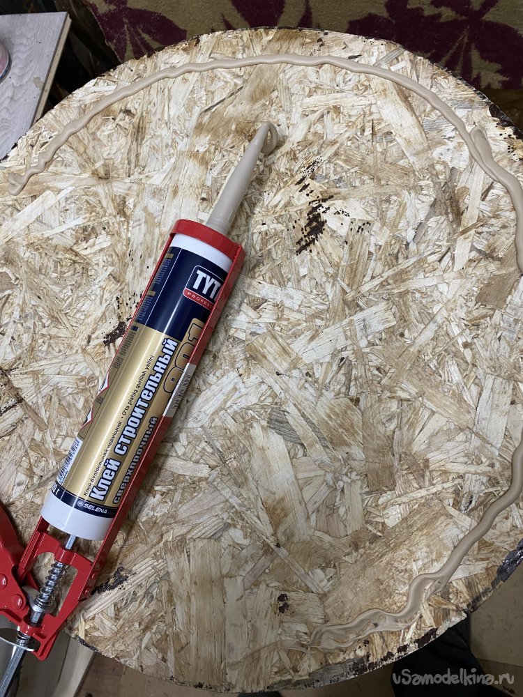 И приклеил столешницу. Для этого использовал монтажный клей ( так называемые "Жидкие гвозди"):