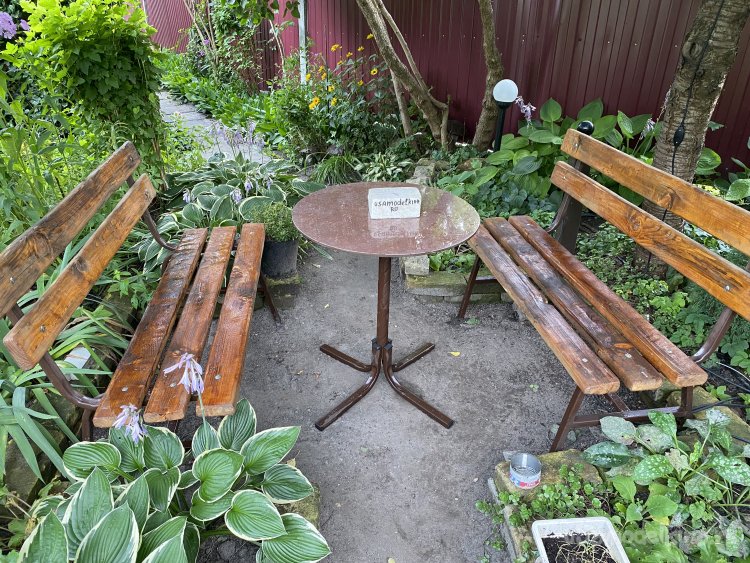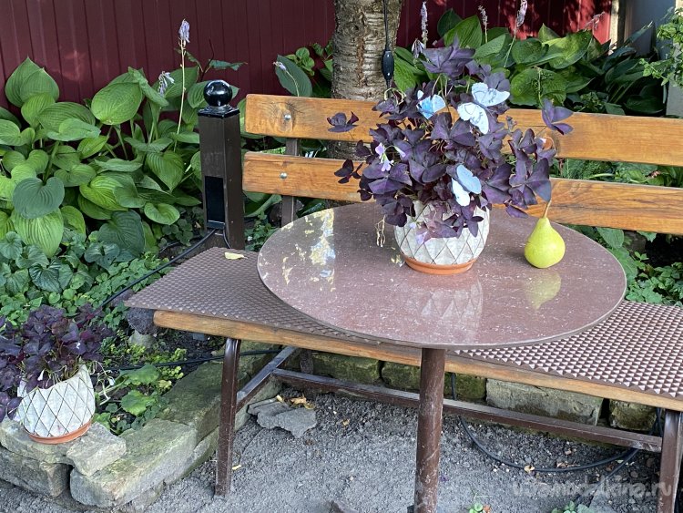Вот, собственно, и всё! Столик идеально стал в моём уголке отдыха между скамейками.