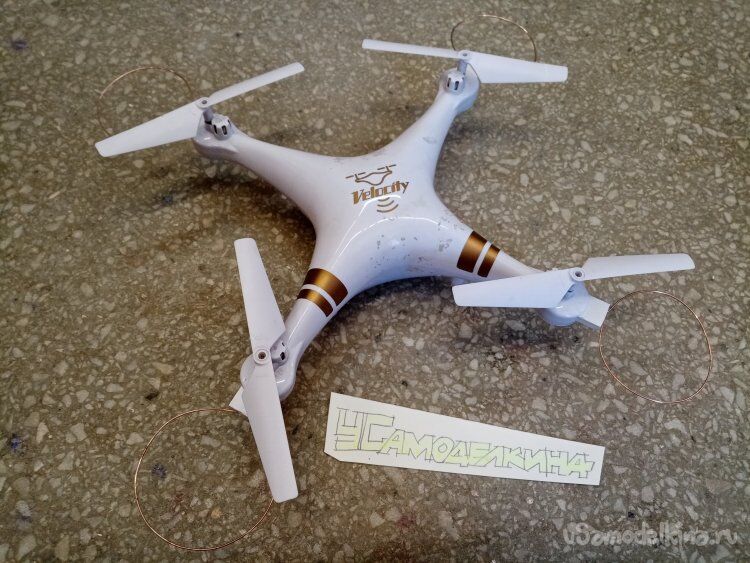 Игрушки понятное дело ломаются. И эта муха тоже немного обтесалась в процессе полетов. Снесены ножки защита винтов. Но без опор взлетать можно. Ограждение винтов это реальная опасность. Вращательные лезвия могут запросто разрубить кожу до крови. Буду устранять угрозу, всеми средствами. В лучах есть отверстия, куда вставлялись держатели рамок защиты. Нужно измерить габариты. Рекламный пластик оказался как раз нужной толщины. Ширину сделаю как нужно. Размечаю кусочек пластика. Отрезаю канцелярским ножом со сменным лезвием по линейке и металлической конечно. Замеряю диаметр оси пропеллера. В полоске нужно вырезать вилку для более точной фиксации на луче. Пробный вариант. Примеряю. Все отлично попал. Нарезал еще заготовок. Примеряю каждую по месту. Рамку ограждения делаю из проволоки для сварочных аппаратов диаметром в 1,2 мм. Омедненная. Подбираю нужное сверло. Парочка отверстий в пластике готово. Защитную рамку сгибаю вокруг подходящего диаметра трубы. Отгибаю кончики для установки в пластик. Приклеиваю на циакрин. Первую рамочку примериваю на луч. Хорошо перекрывает винт. И остальные три защиты уже готовы. Проект закончен, безопасный полет обеспечен.
